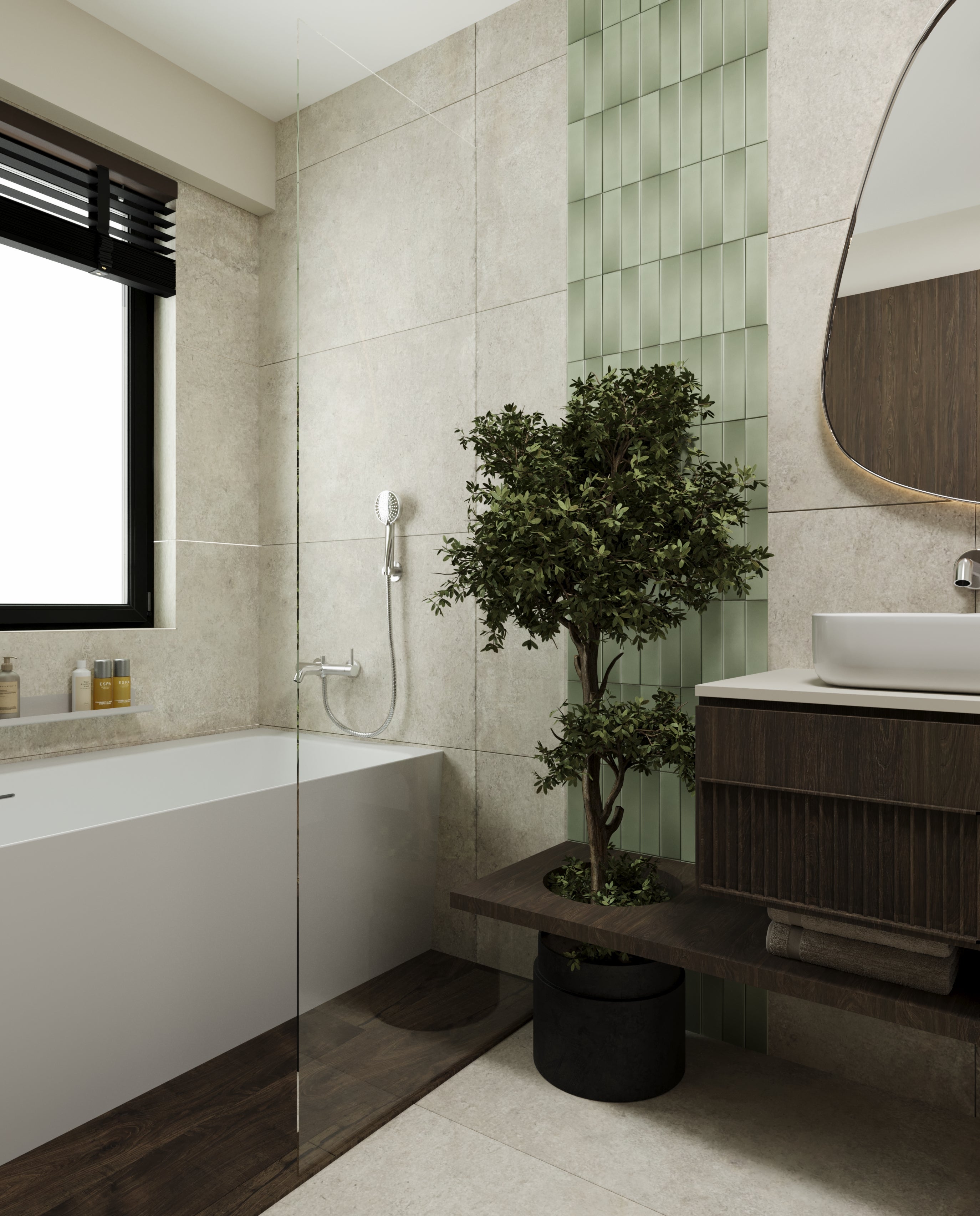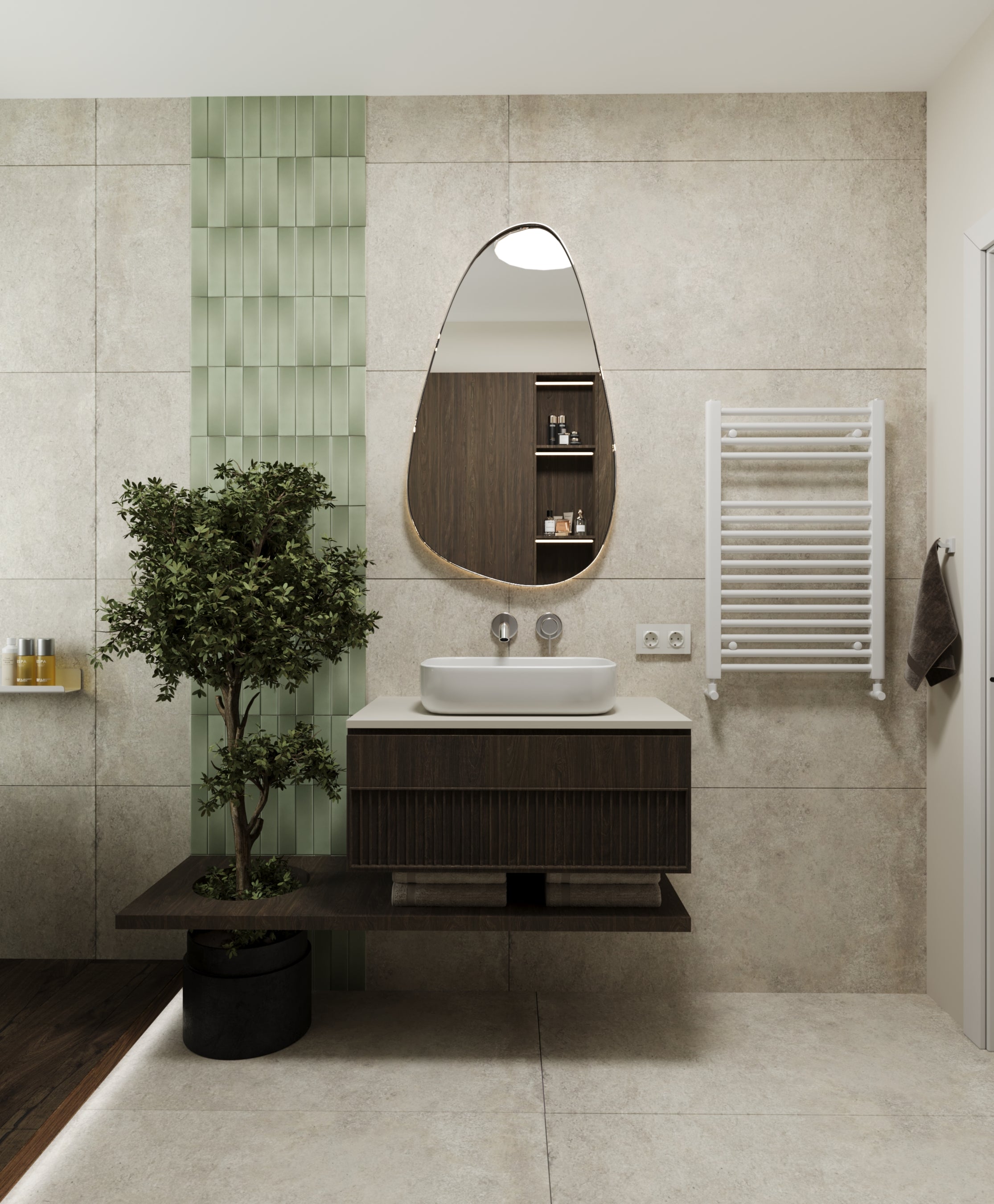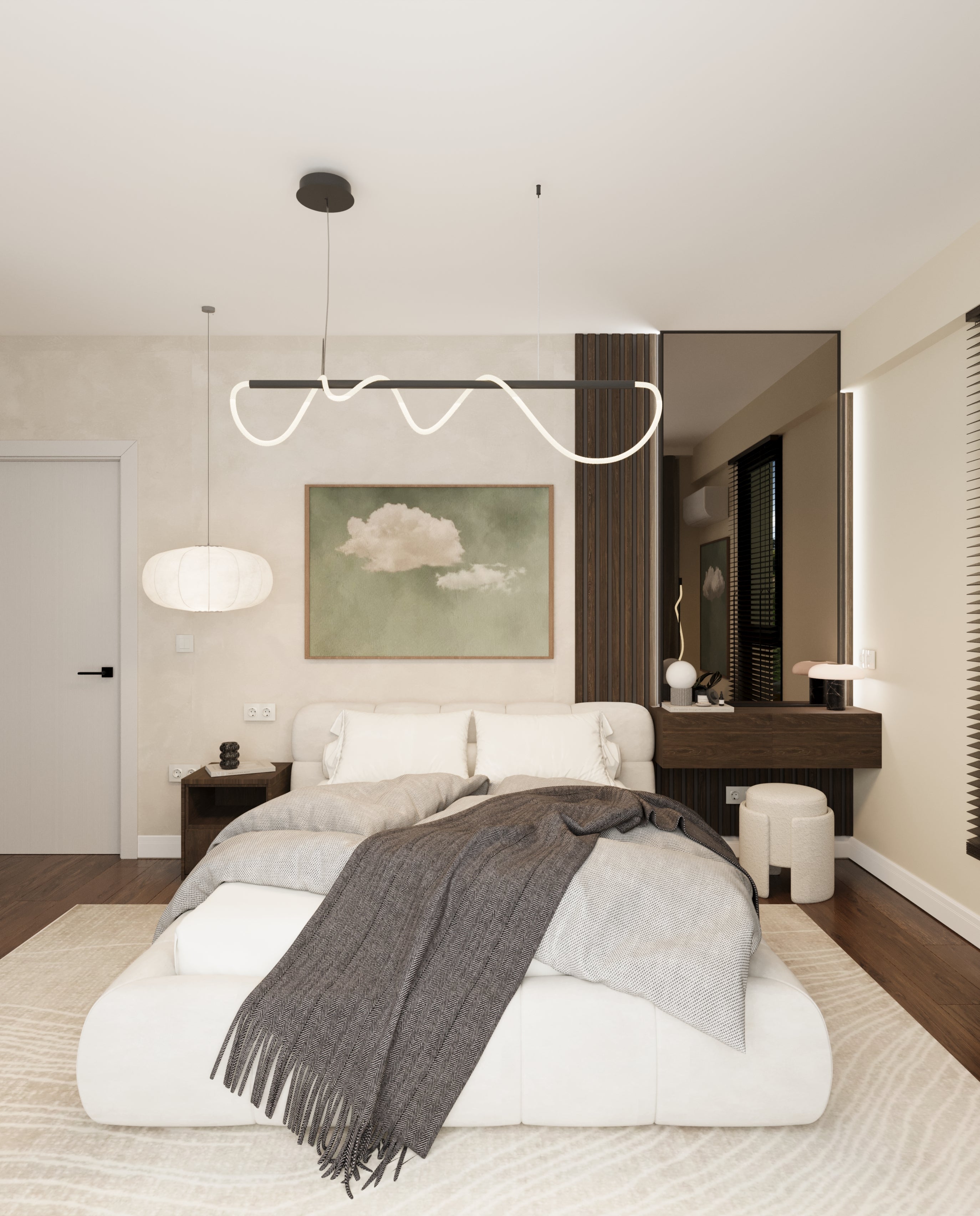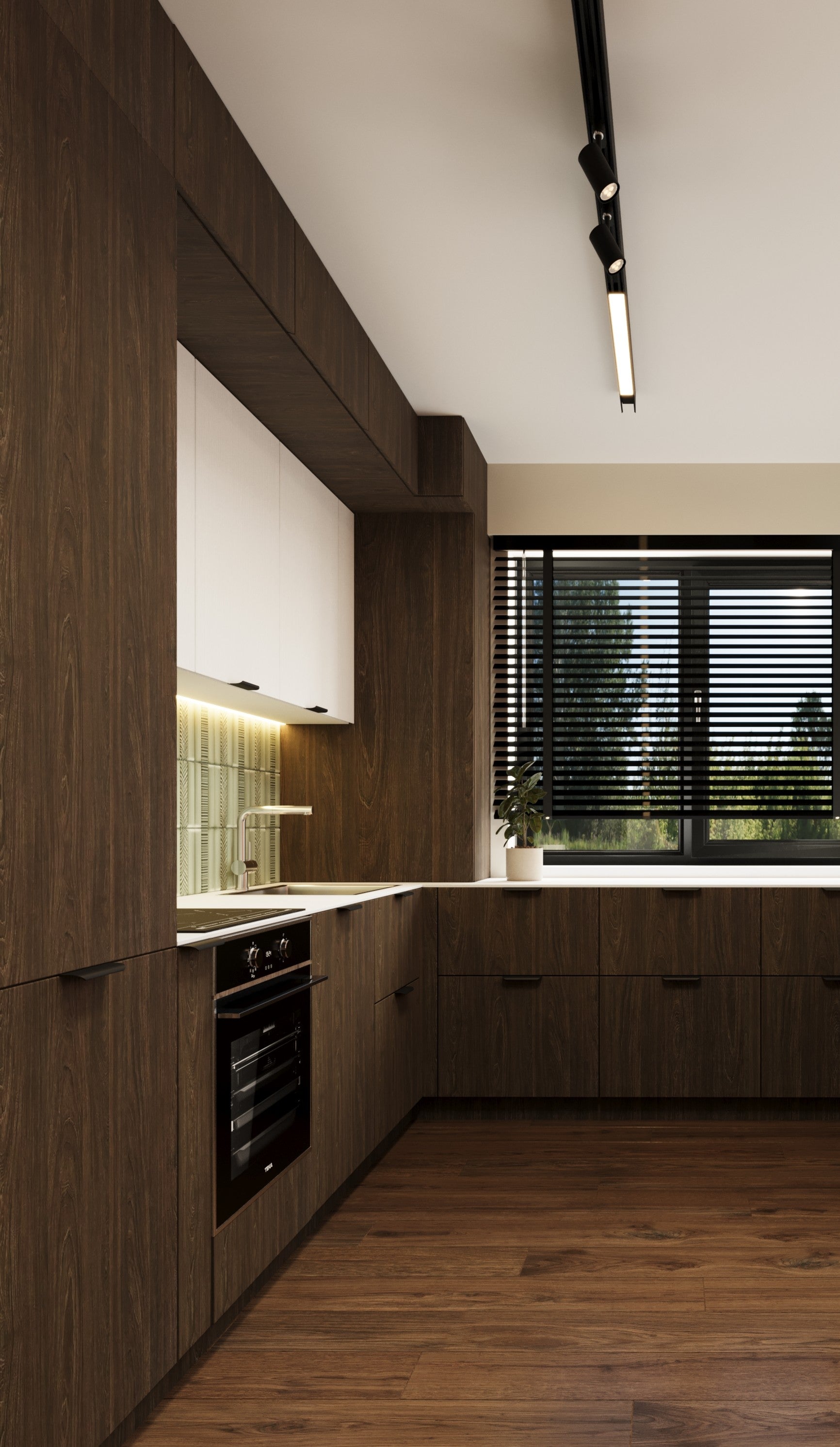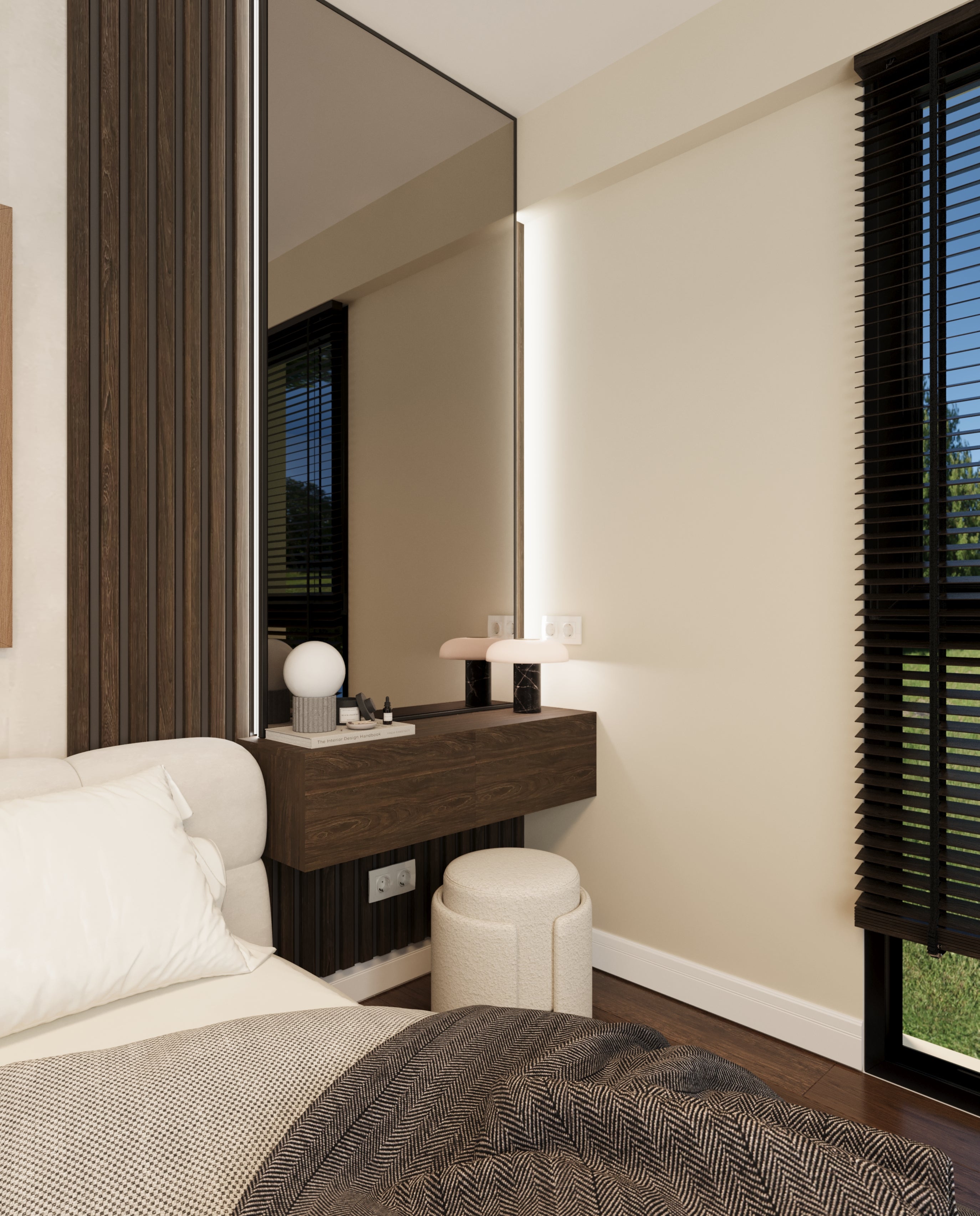 „Put on your favorite vinyl and let the design set the mood.” Acest proiect combină tonuri naturale cu finisaje calde de lemn, creând un ambient relaxant și primitor. Accentele de verde aduc prospețime și vitalitate spațiului, iar atmosfera retro completează experiența vizuală și senzorială, transformând fiecare colț într-un loc unde stilul și confortul se întâlnesc armonios.