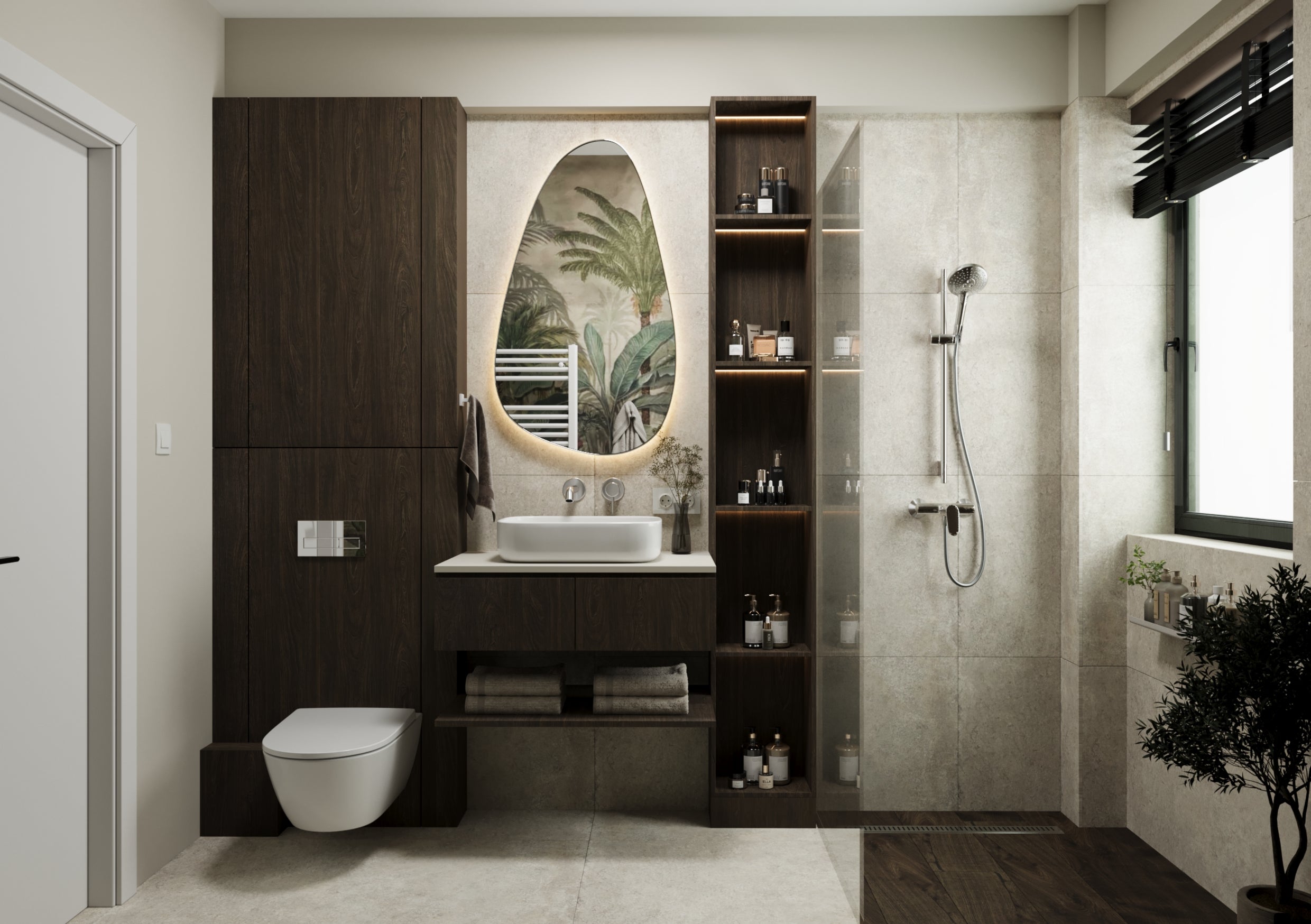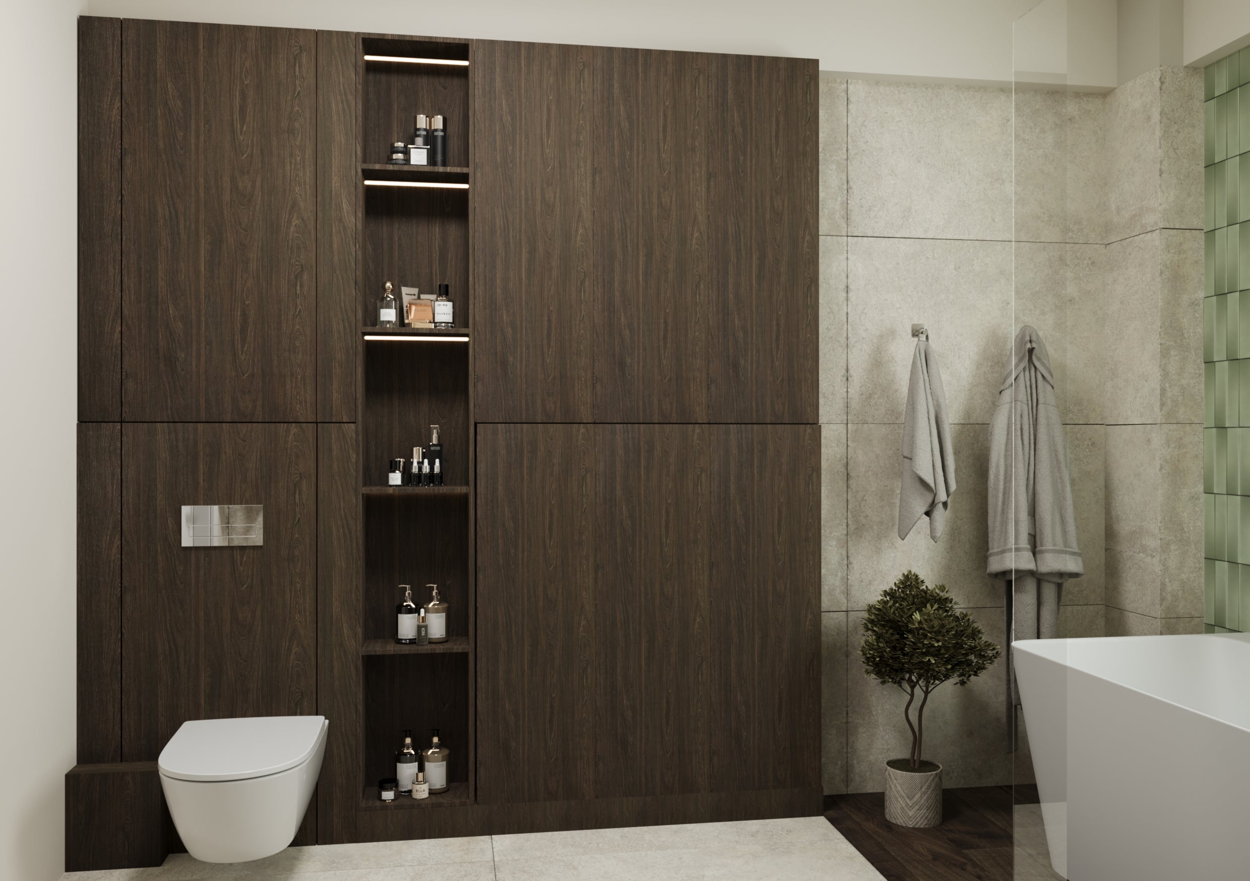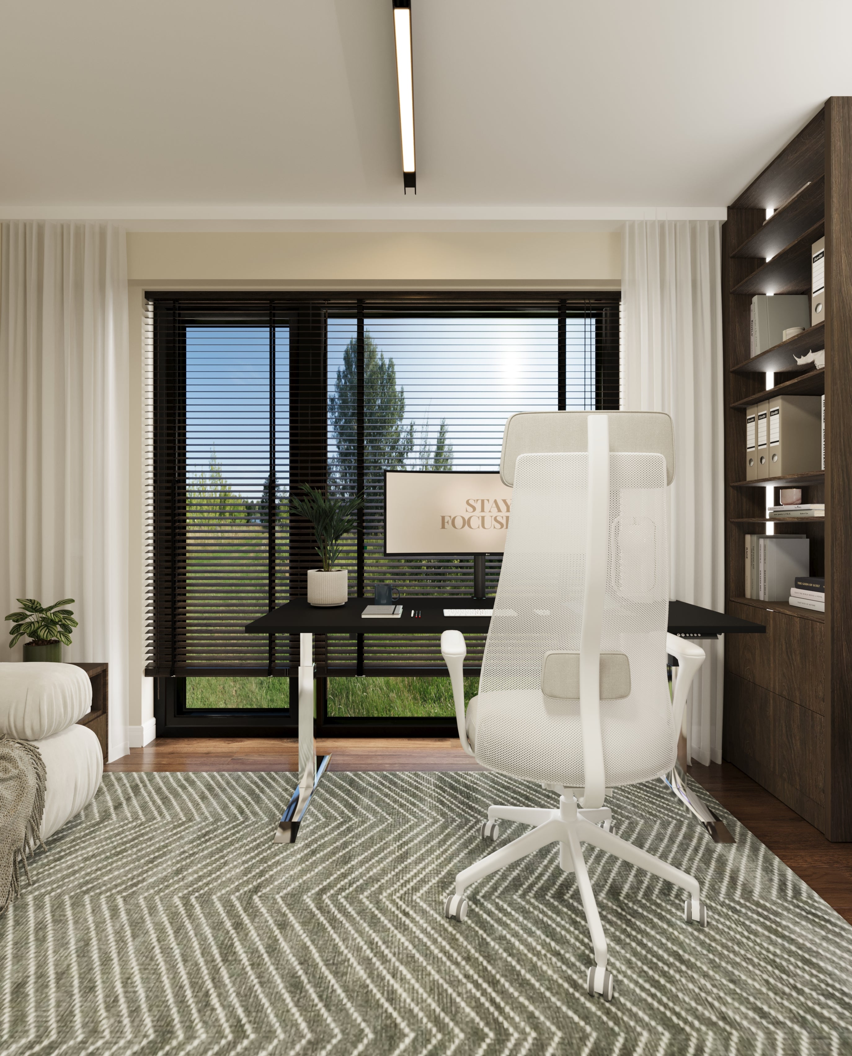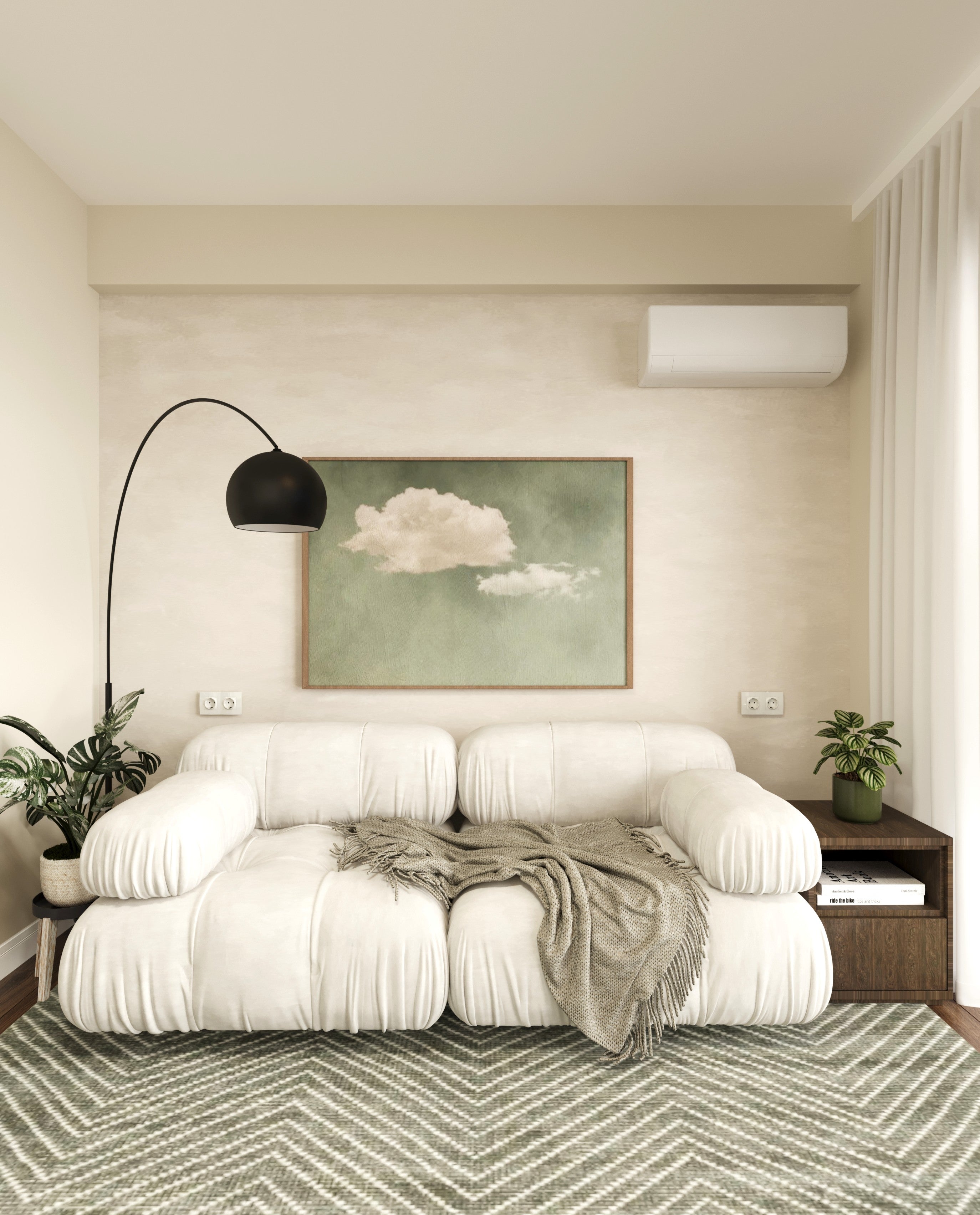 „Put on your favorite vinyl and let the design set the mood.” Acest proiect combină tonuri naturale cu finisaje calde de lemn, creând un ambient relaxant și primitor. Accentele de verde aduc prospețime și vitalitate spațiului, iar atmosfera retro completează experiența vizuală și senzorială, transformând fiecare colț într-un loc unde stilul și confortul se întâlnesc armonios.