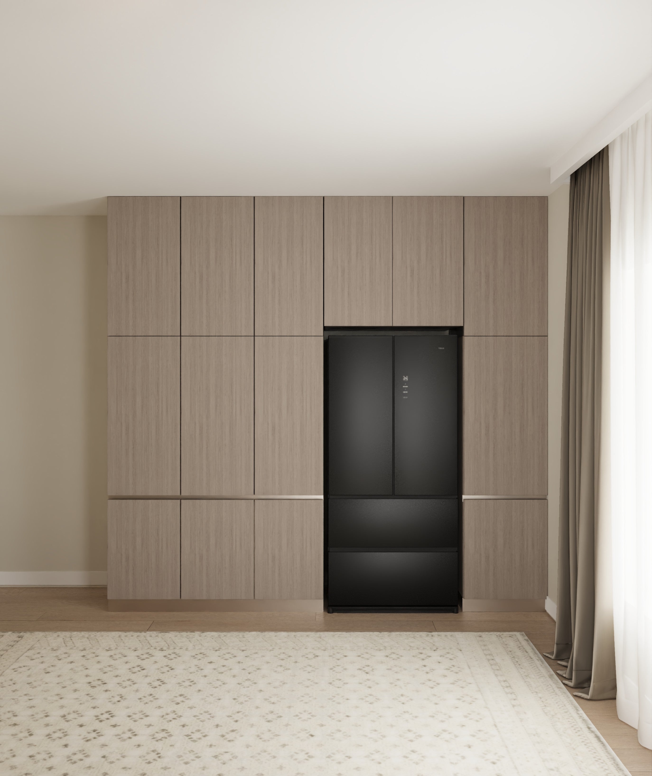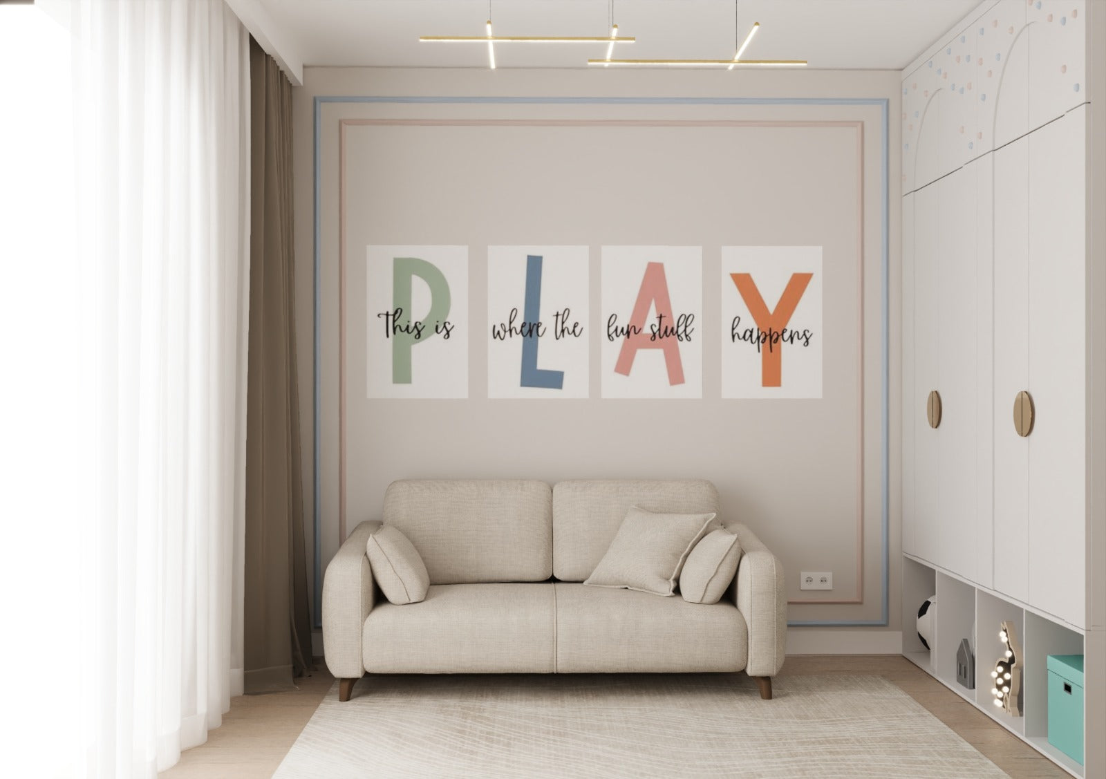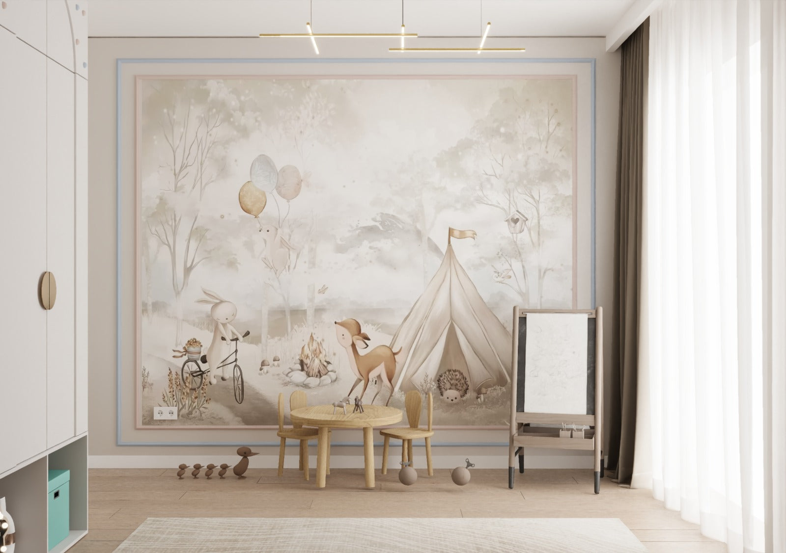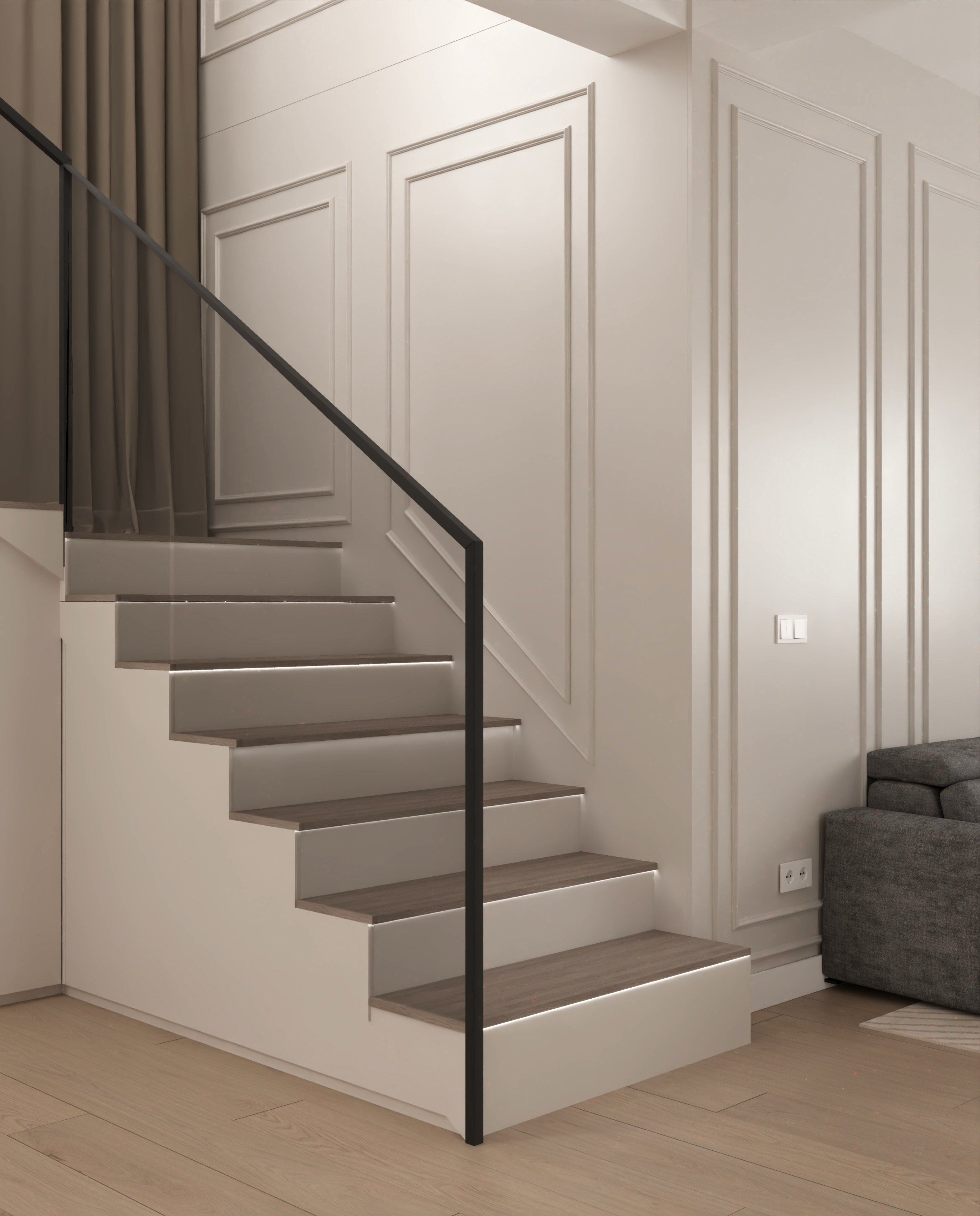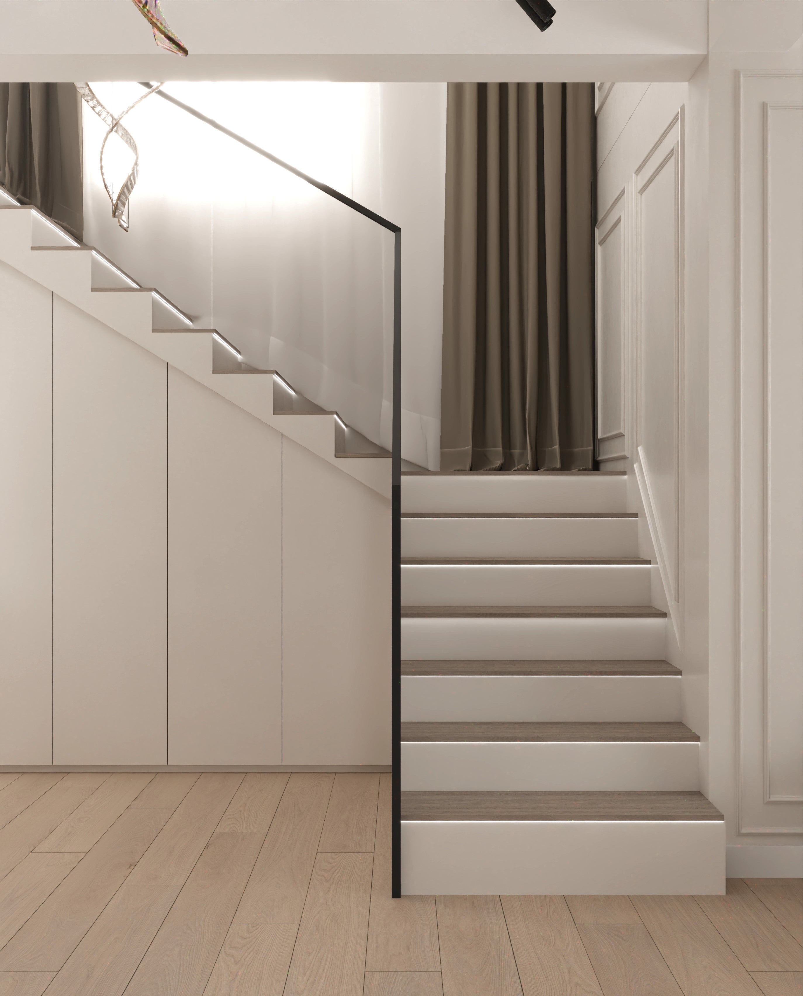 Un design elegant în tonuri calde de bej, cu suprafețe ce imită marmura și mobilier cu forme rotunjite care aduce finețe și confort. Accentele aurii și baghetările decorative completează compoziția, oferind un aer sofisticat, luminos și atemporal.