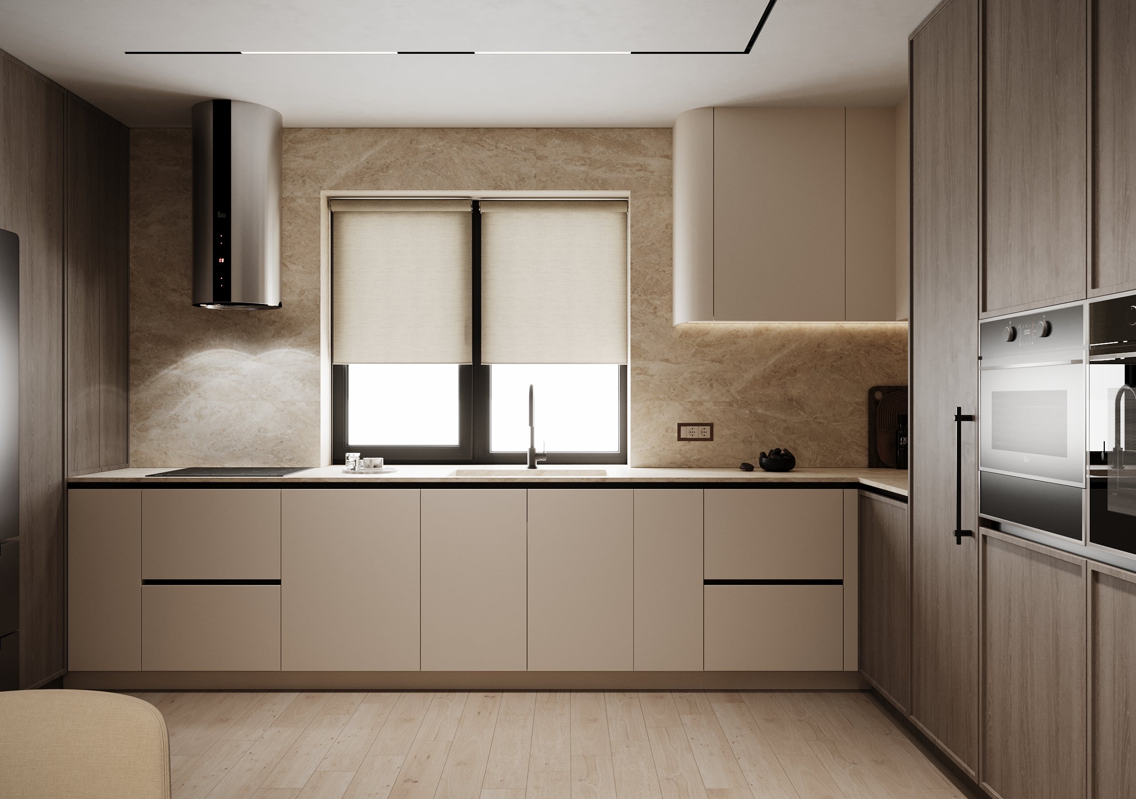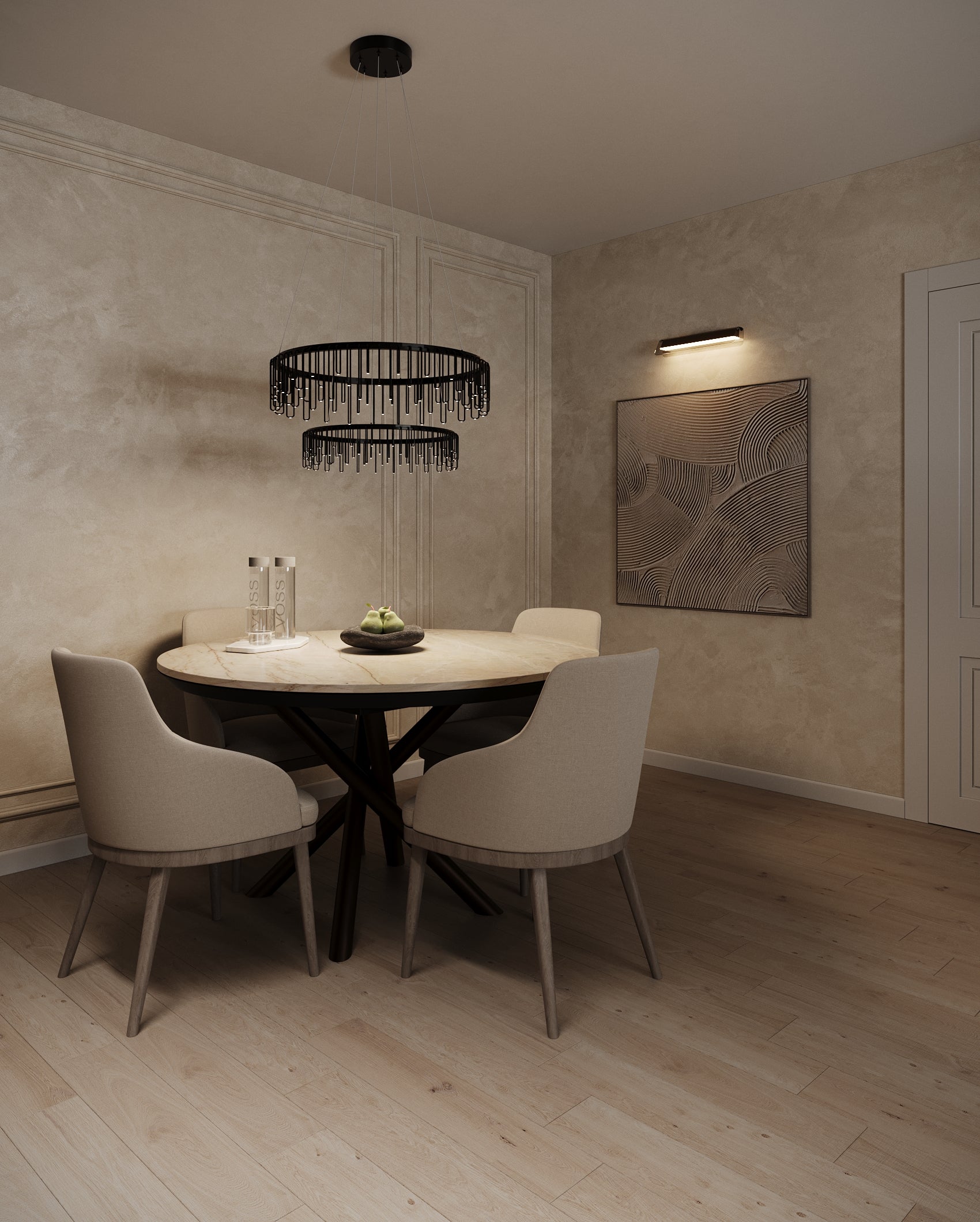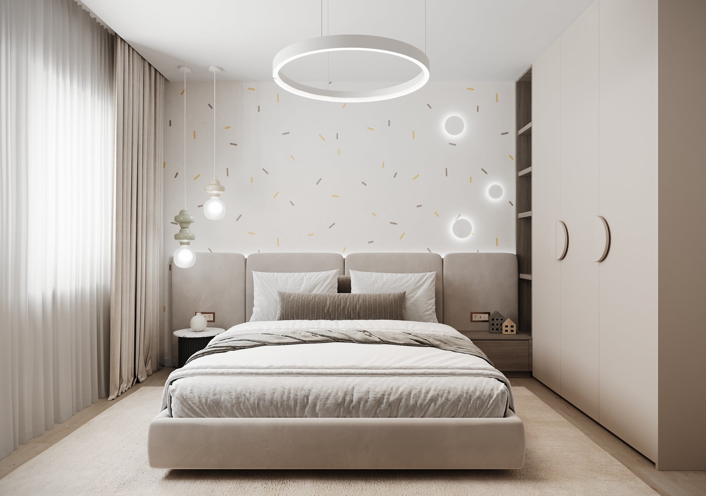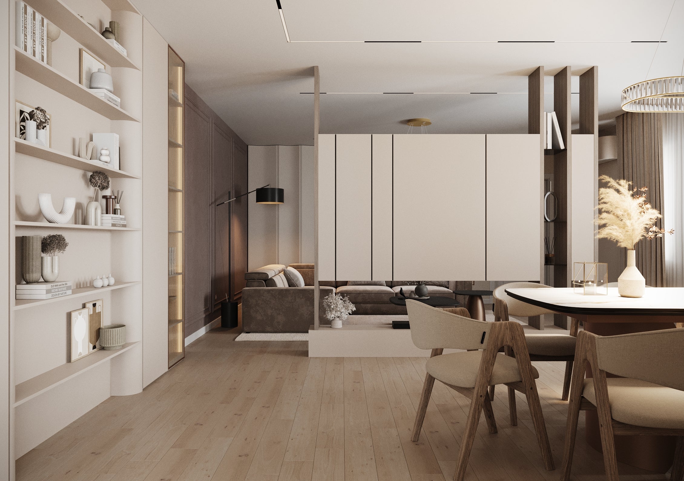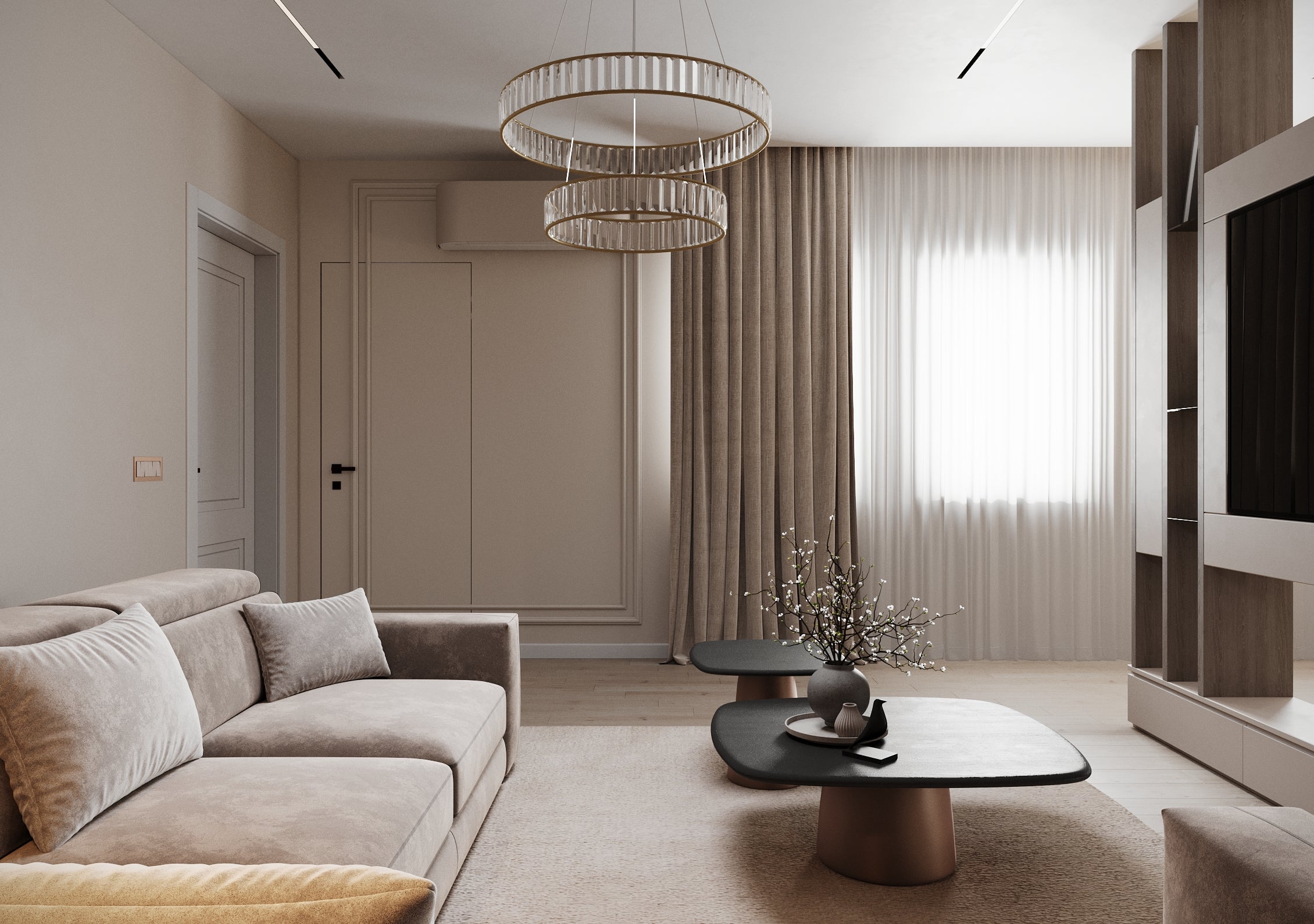 Spațiul combină nuanțe neutre de bej cu tonuri calde ale lemnului, dar am încercat să presar și câteva accente de culoare pentru un efect mai cald si primitor. Pe de altă parte, această amenajare nu a avut o linie clară sau o tematică strictă, de aceea am mers pe materiale naturale și o paleta subtilă ce conferă senzația de confort și eleganță, iar designul rămâne simplu și armonios.