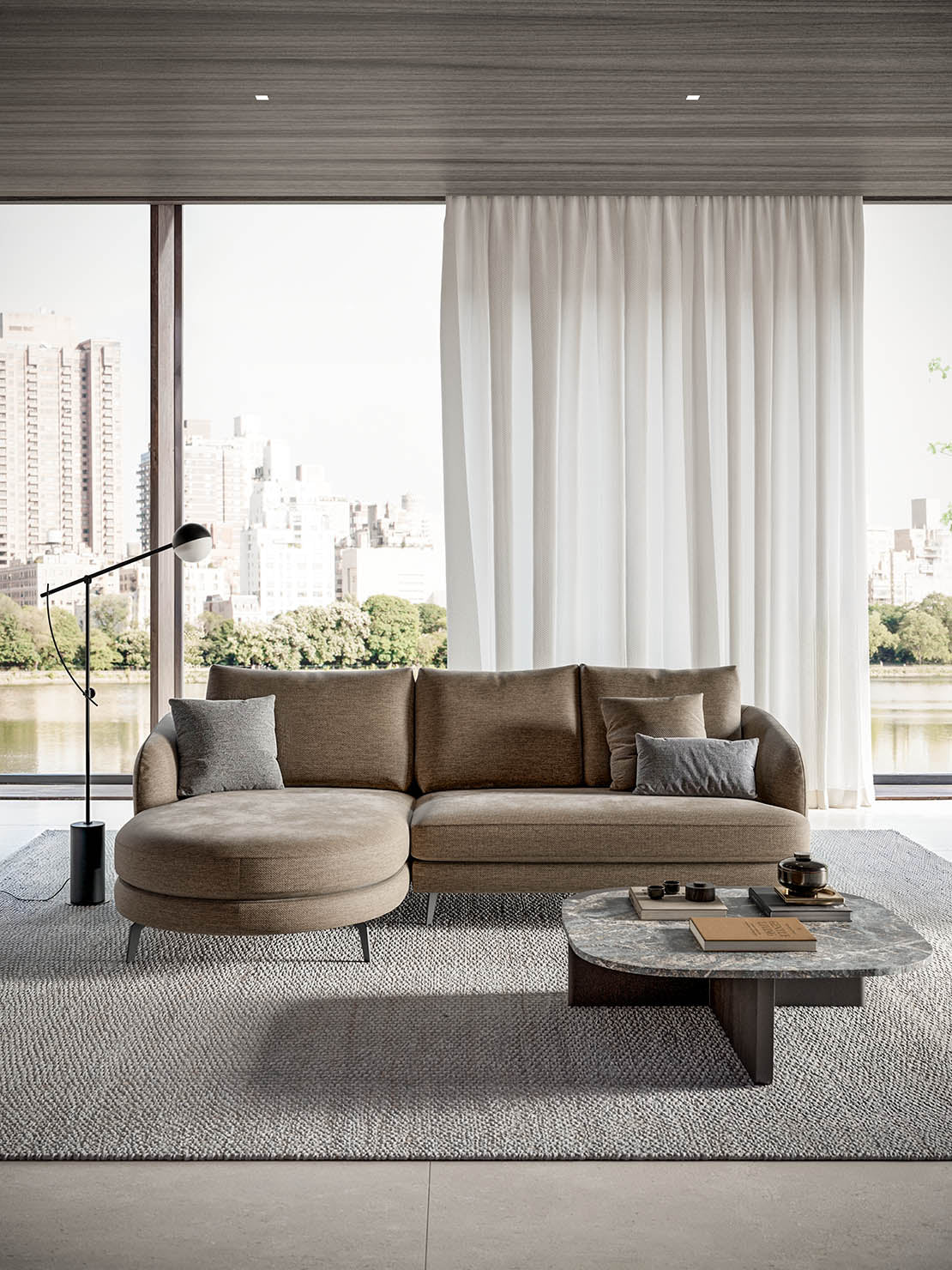 În varianta din piele, sunt detașabile doar pernele de spătar și brațele.