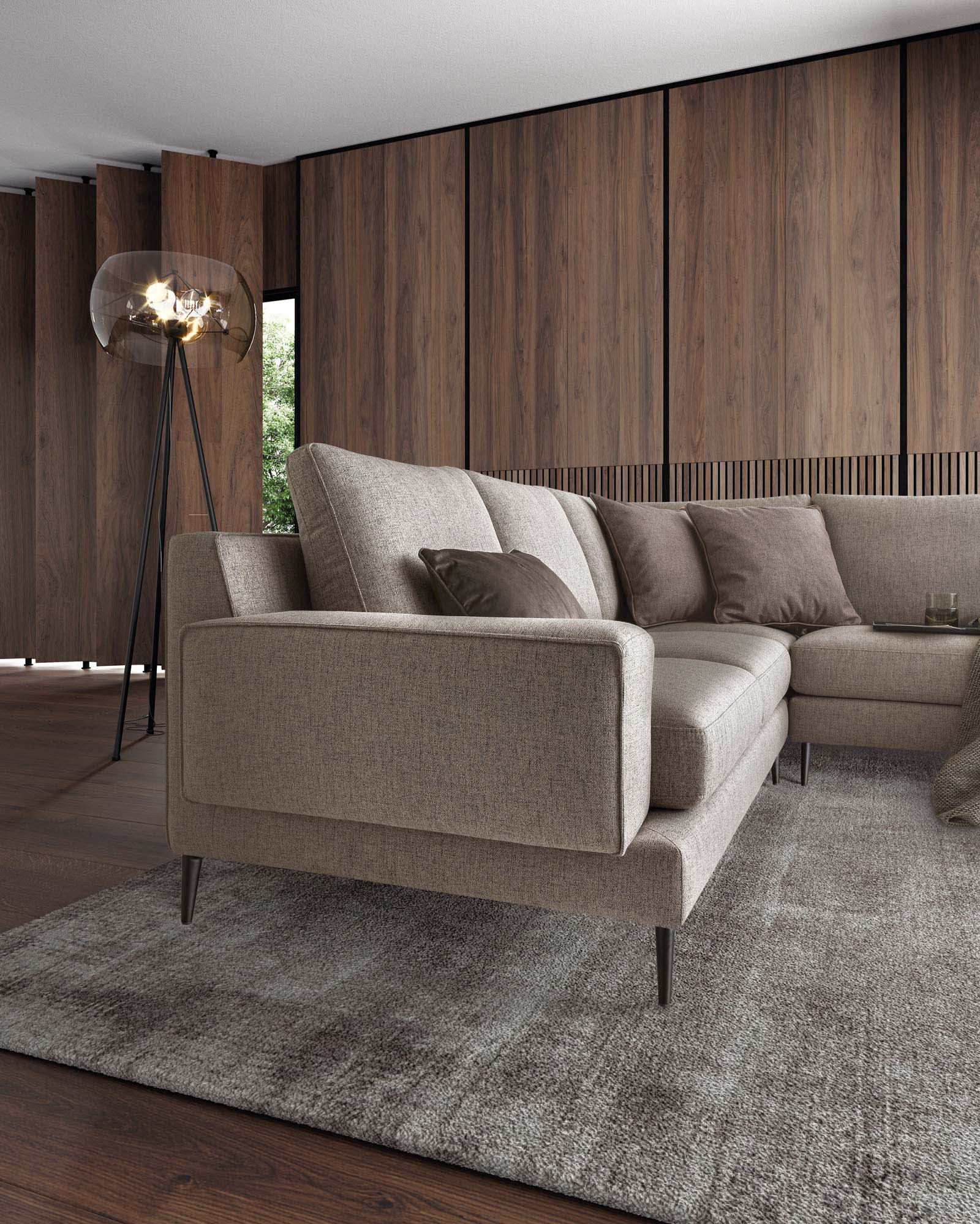 Canapeaua Kennedy, la fel ca toate produsele LeComfort, oferă multiple opțiuni de personalizare, evidențiind esența modulară care definește brandul nostru.